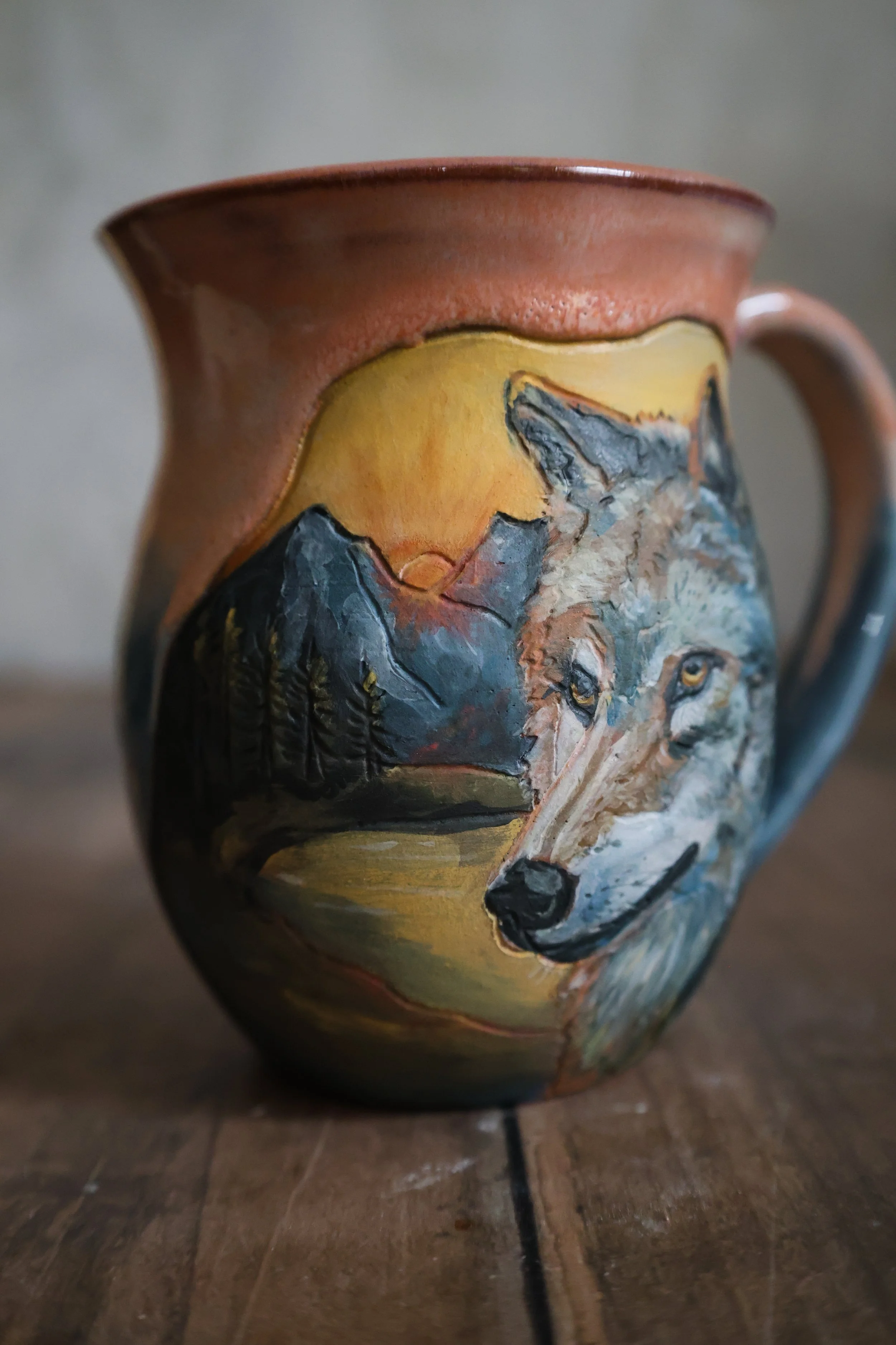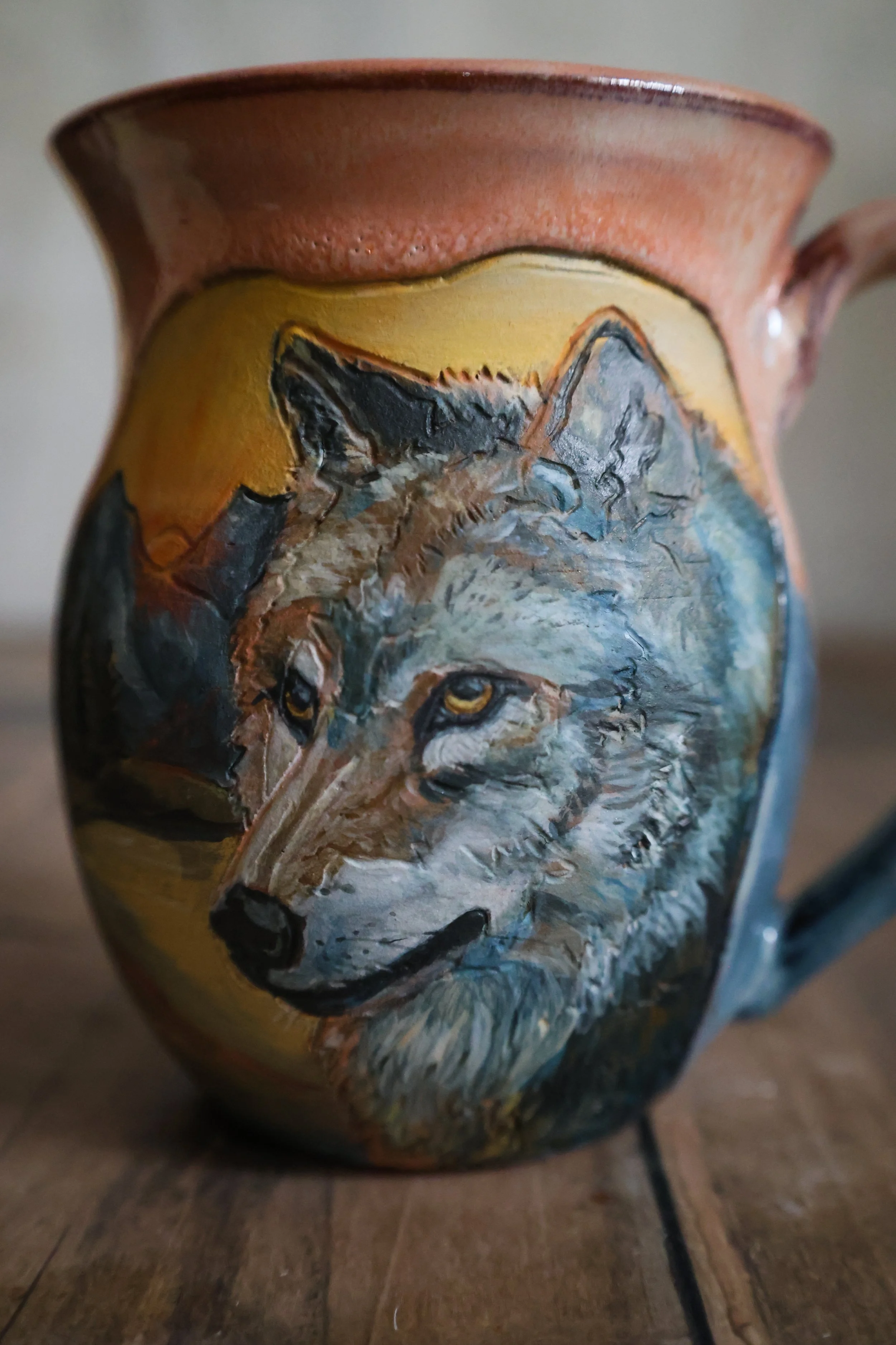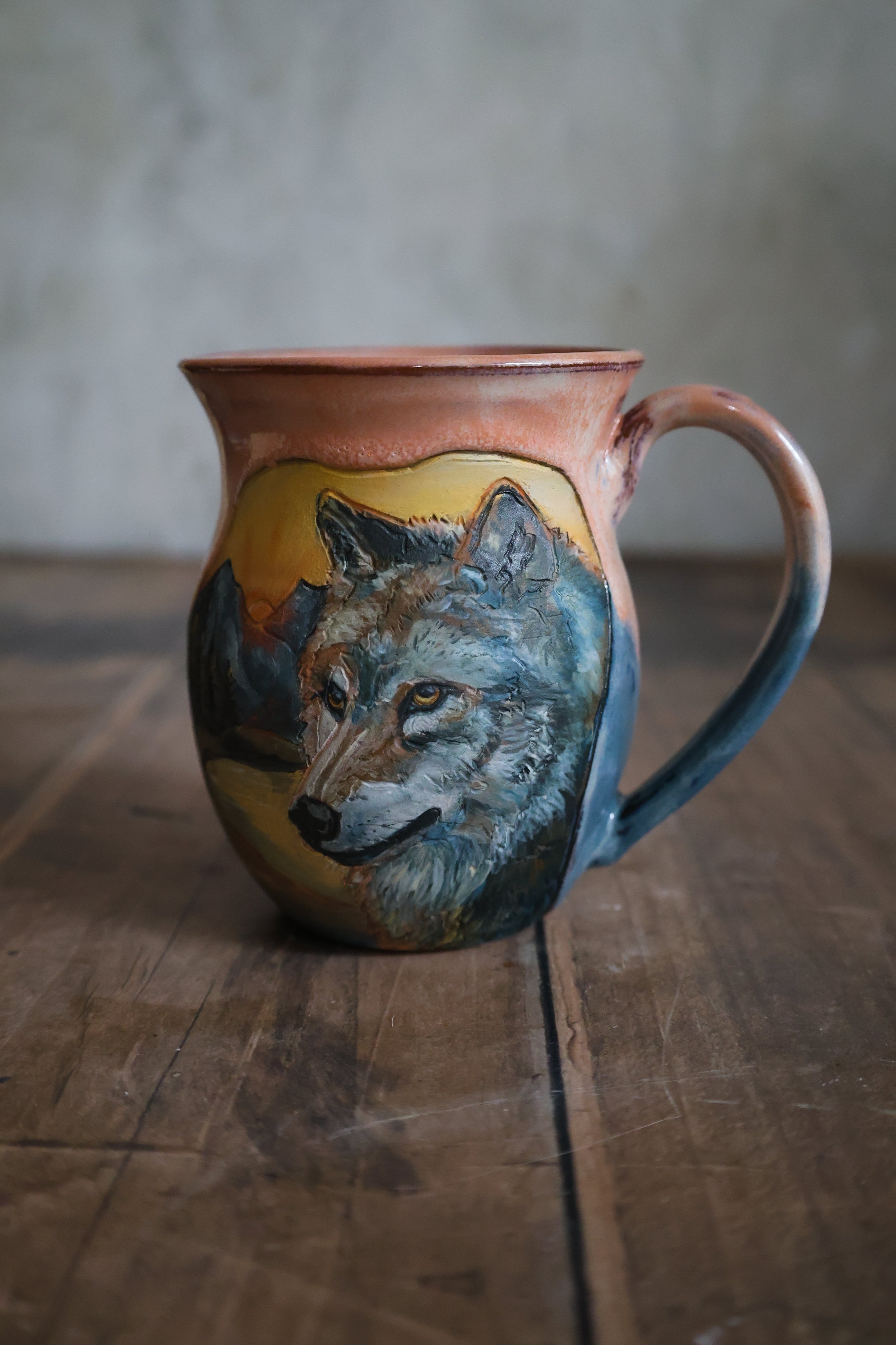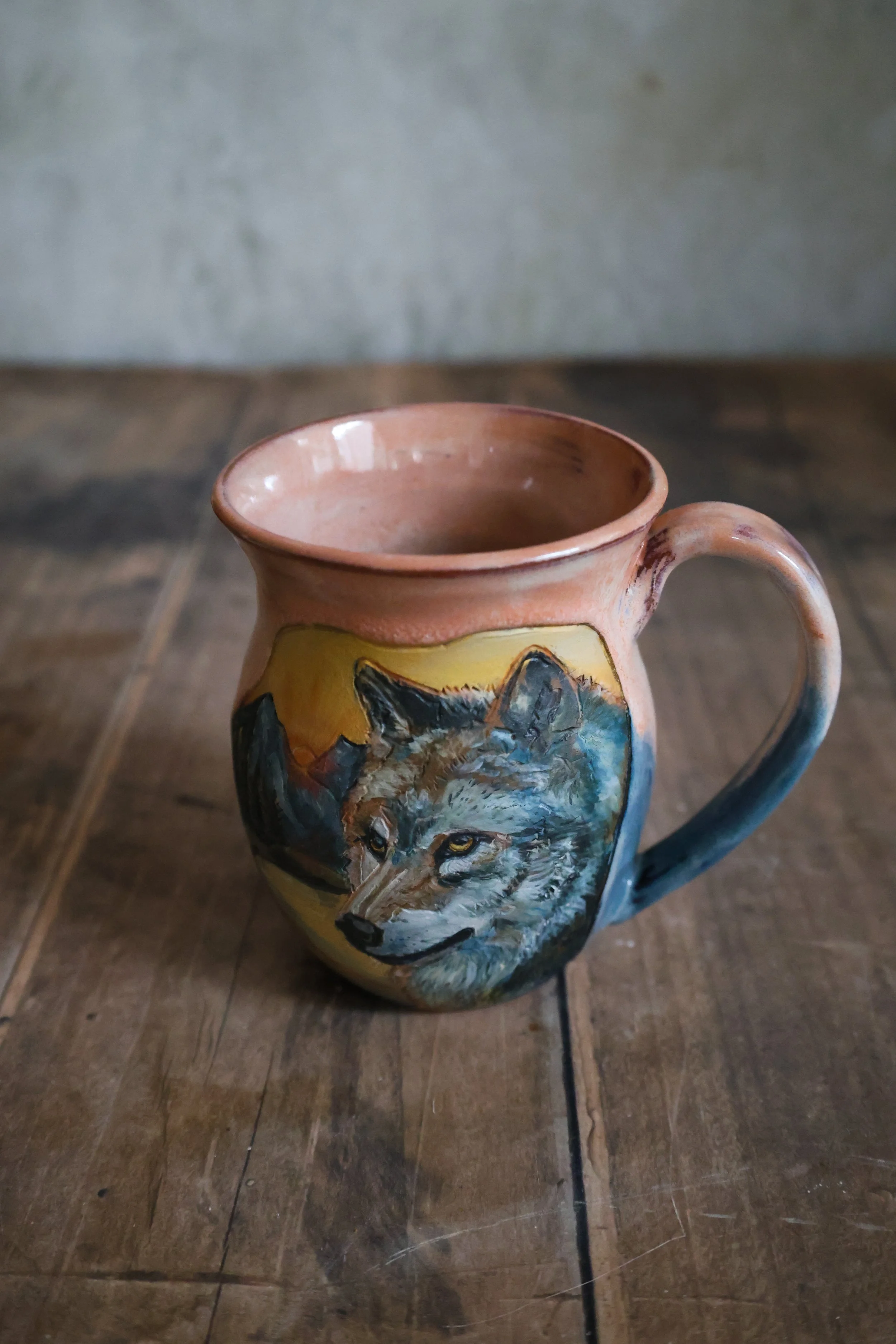 Hand Painted Ceramic Wolf Mug - Large