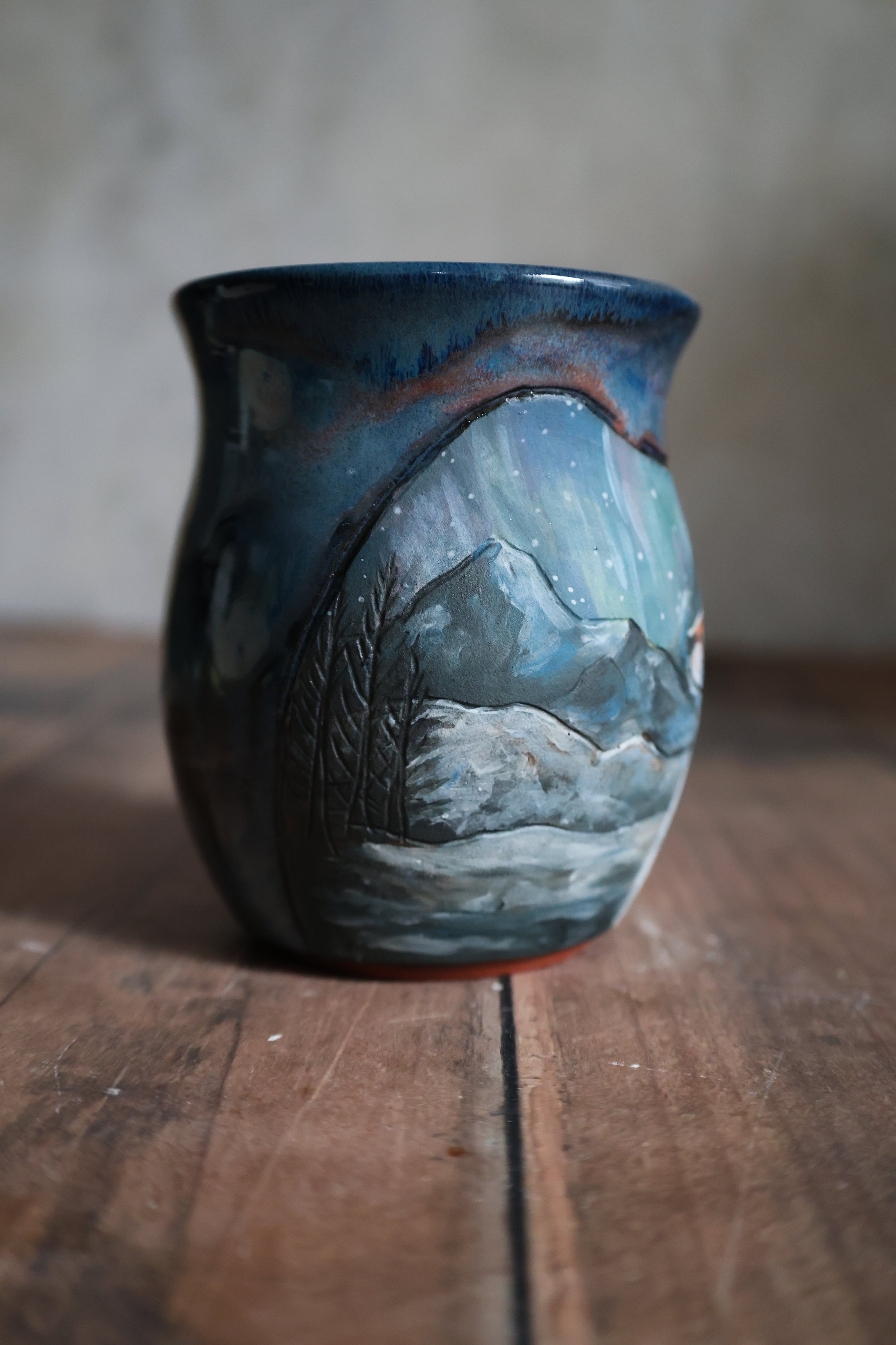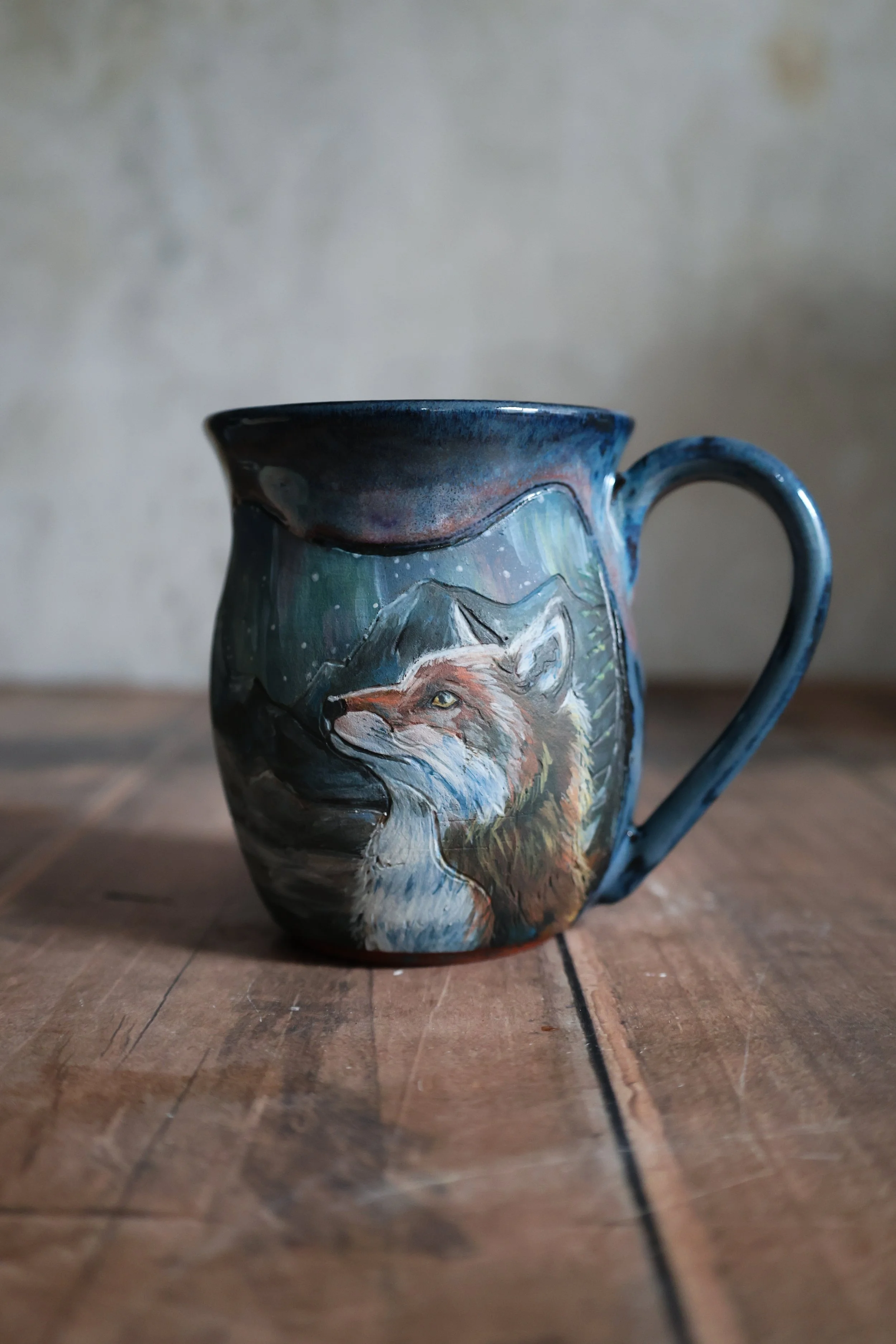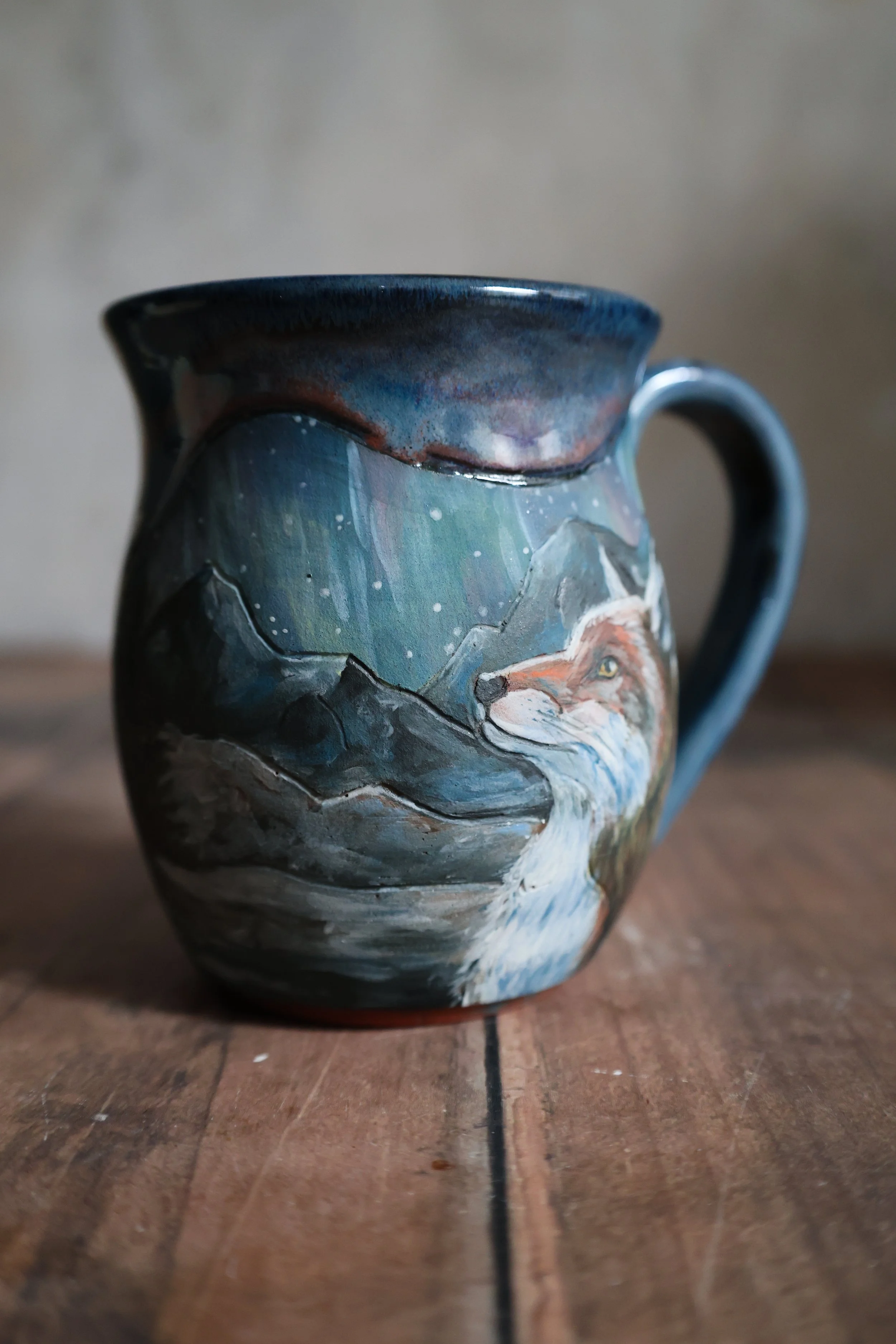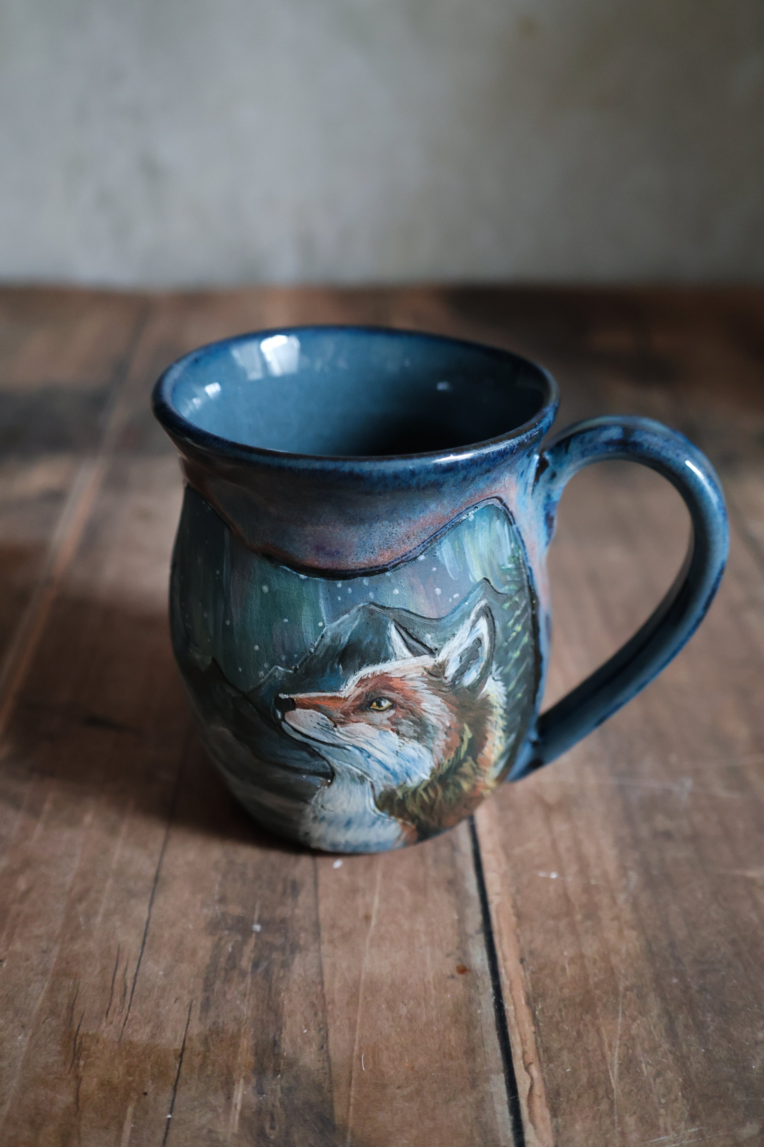 Hand Painted Ceramic Aurora Fox Mug - Large