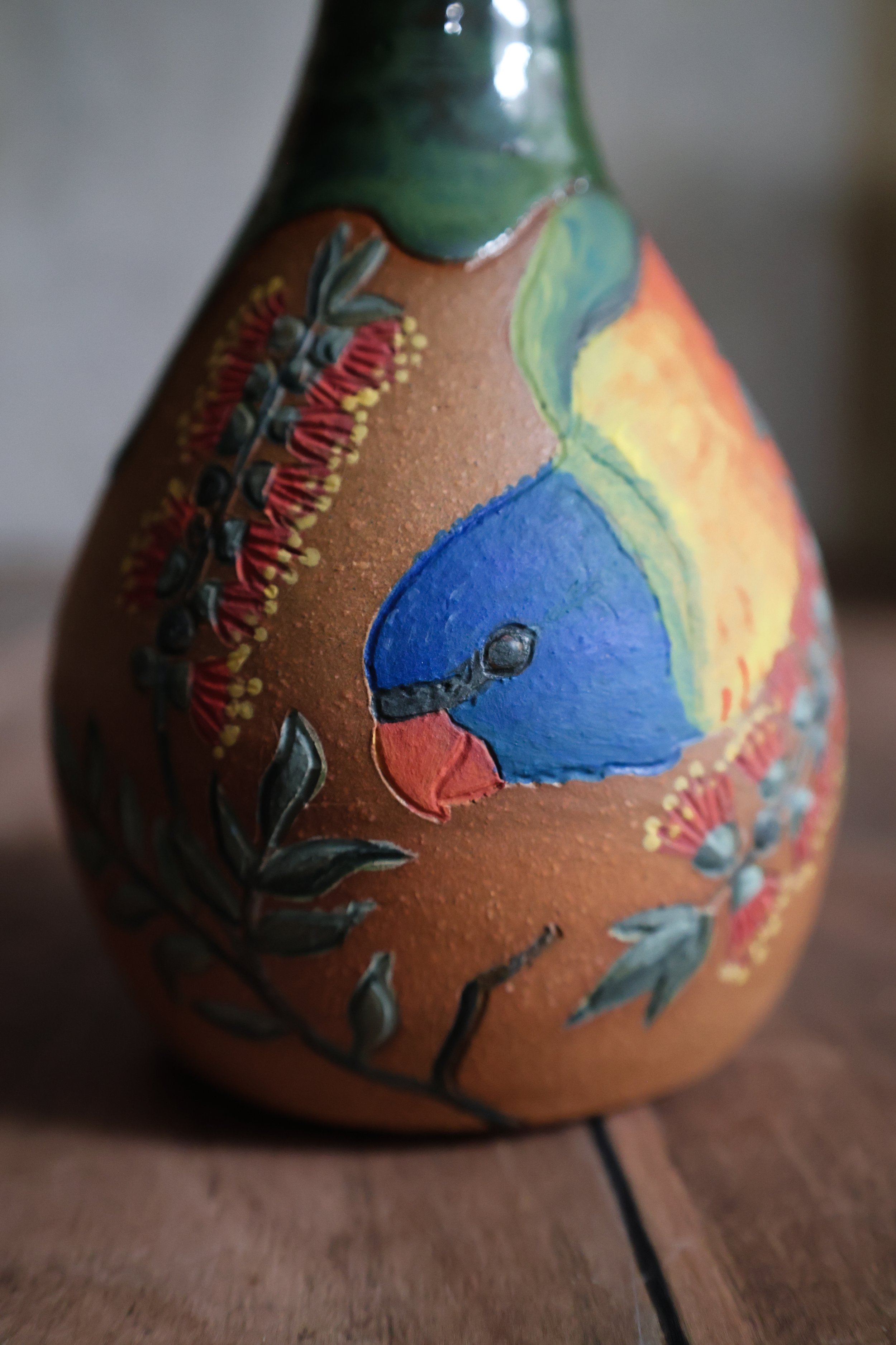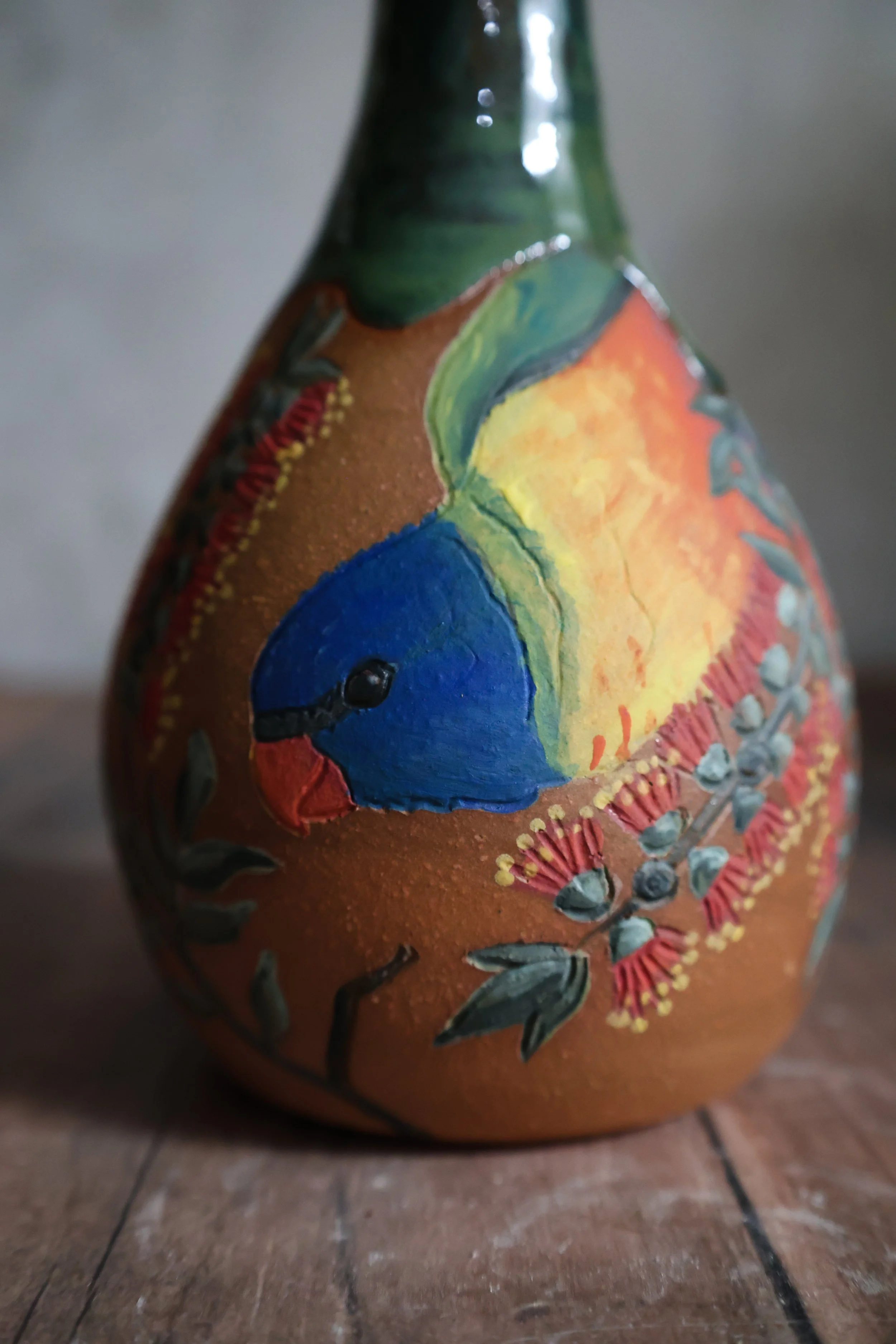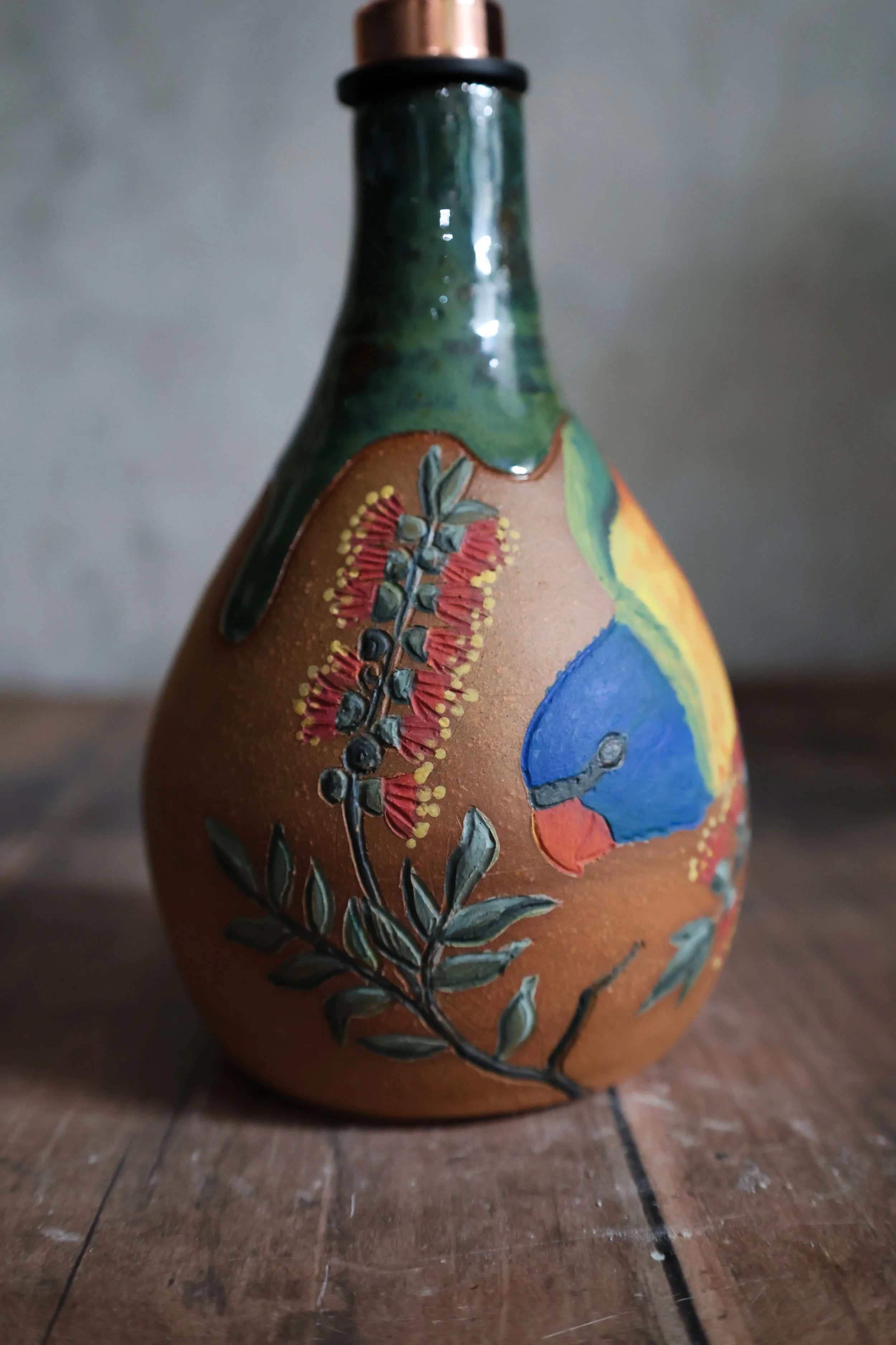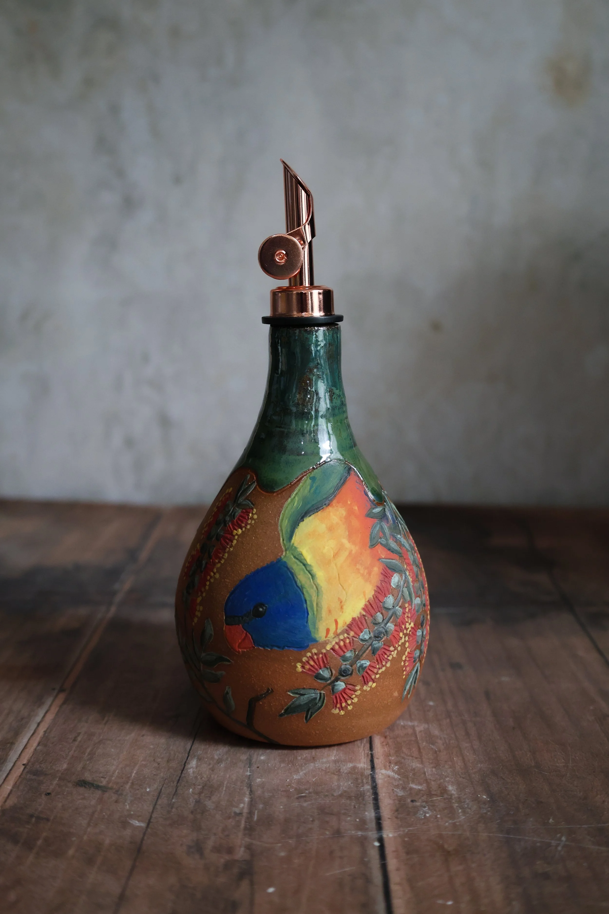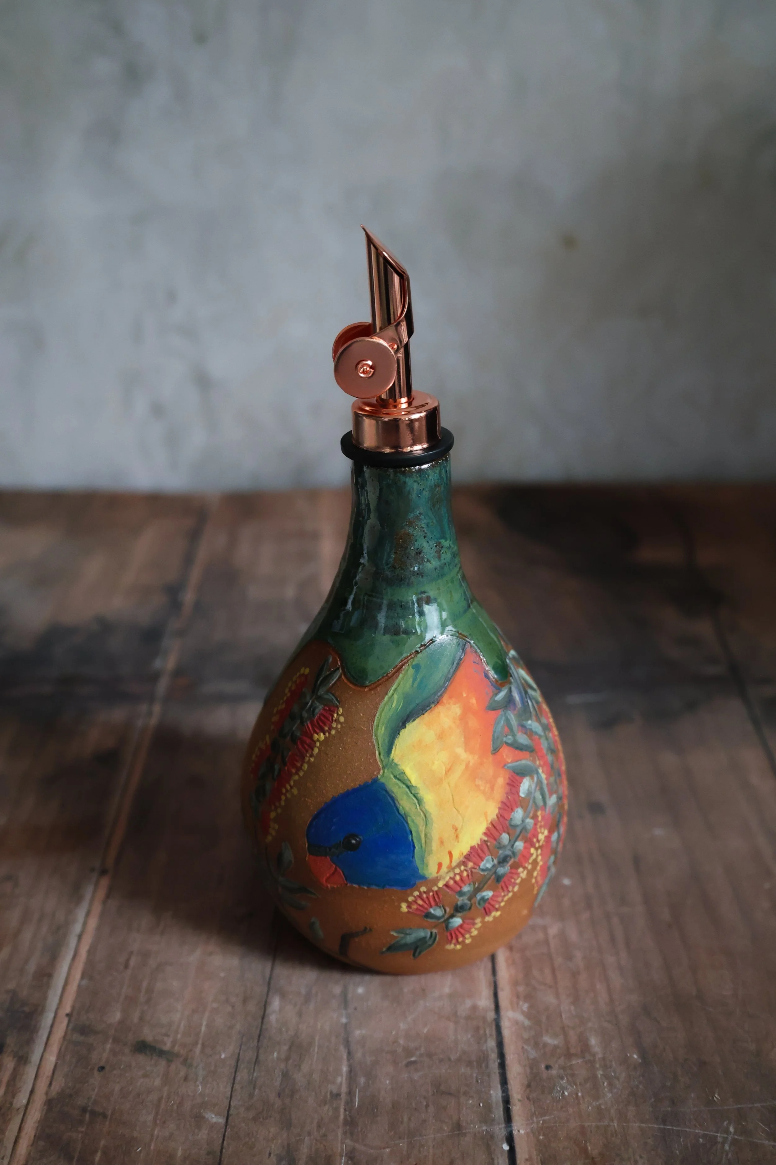 Hand Painted Ceramic Rainbow Lorikeet Oil Pitcher