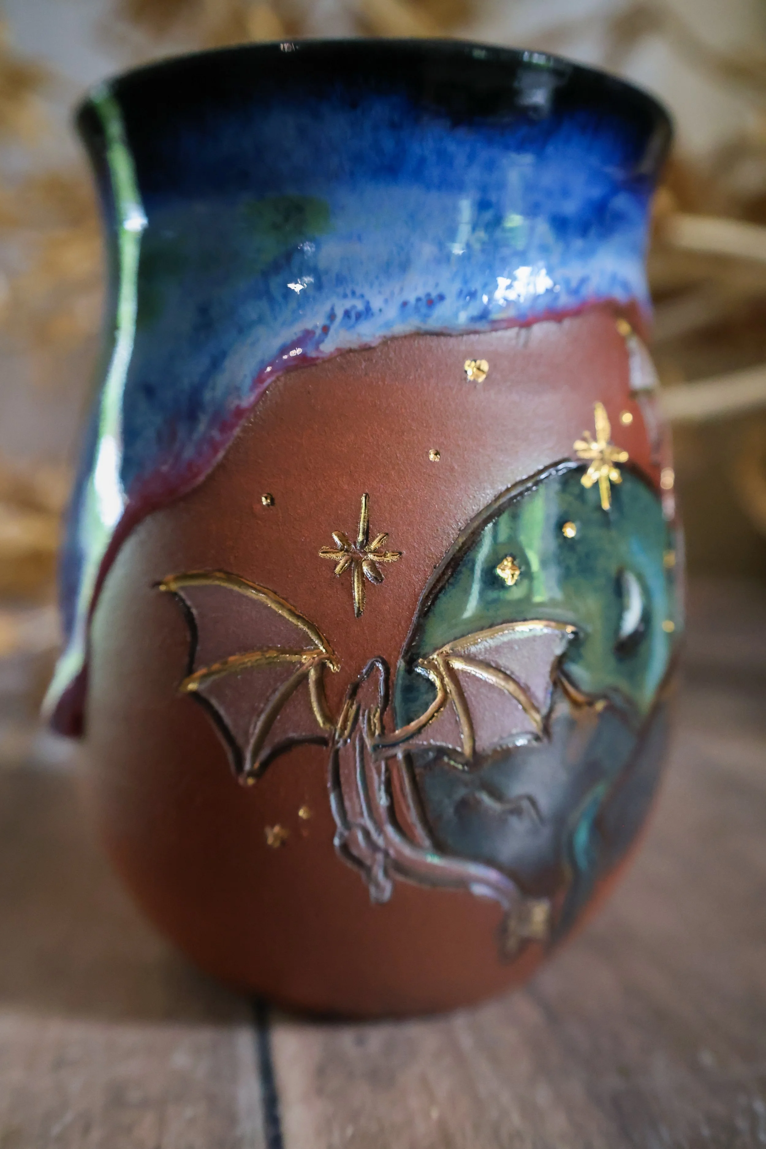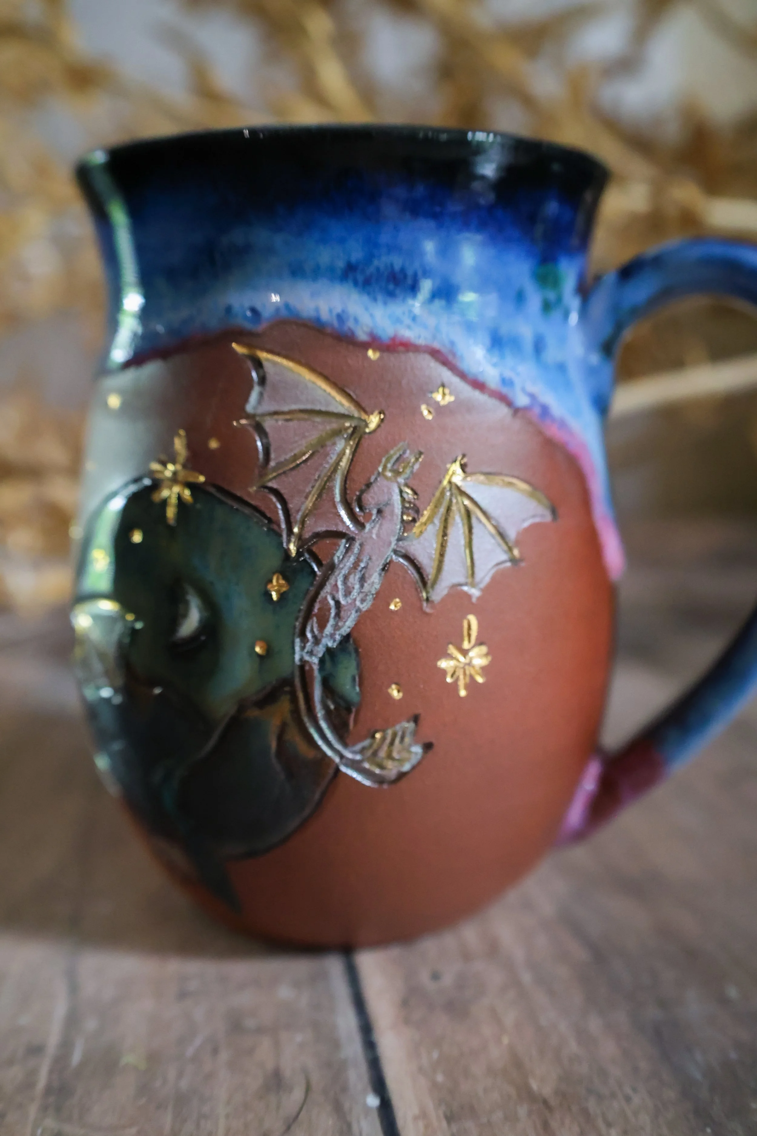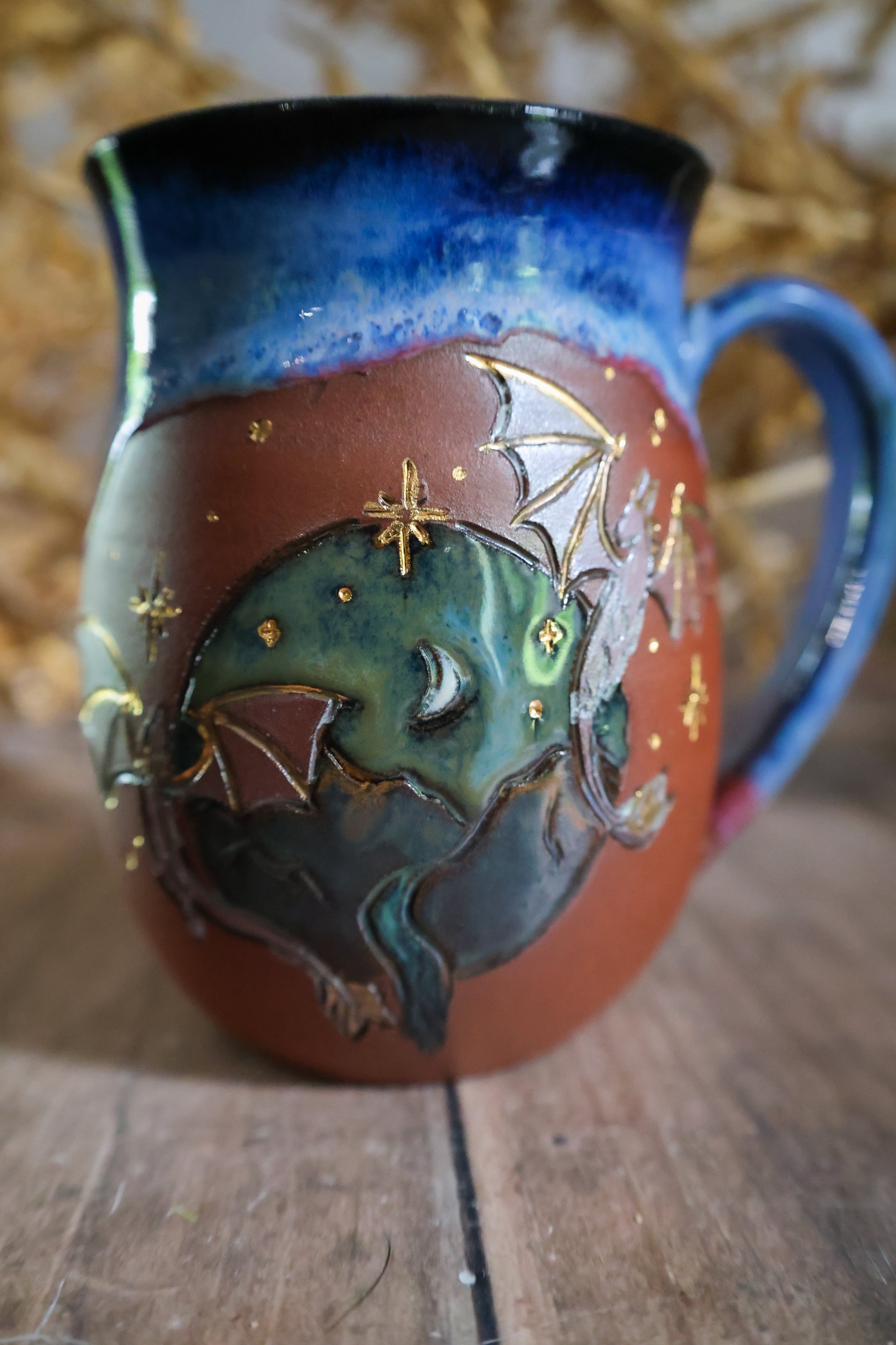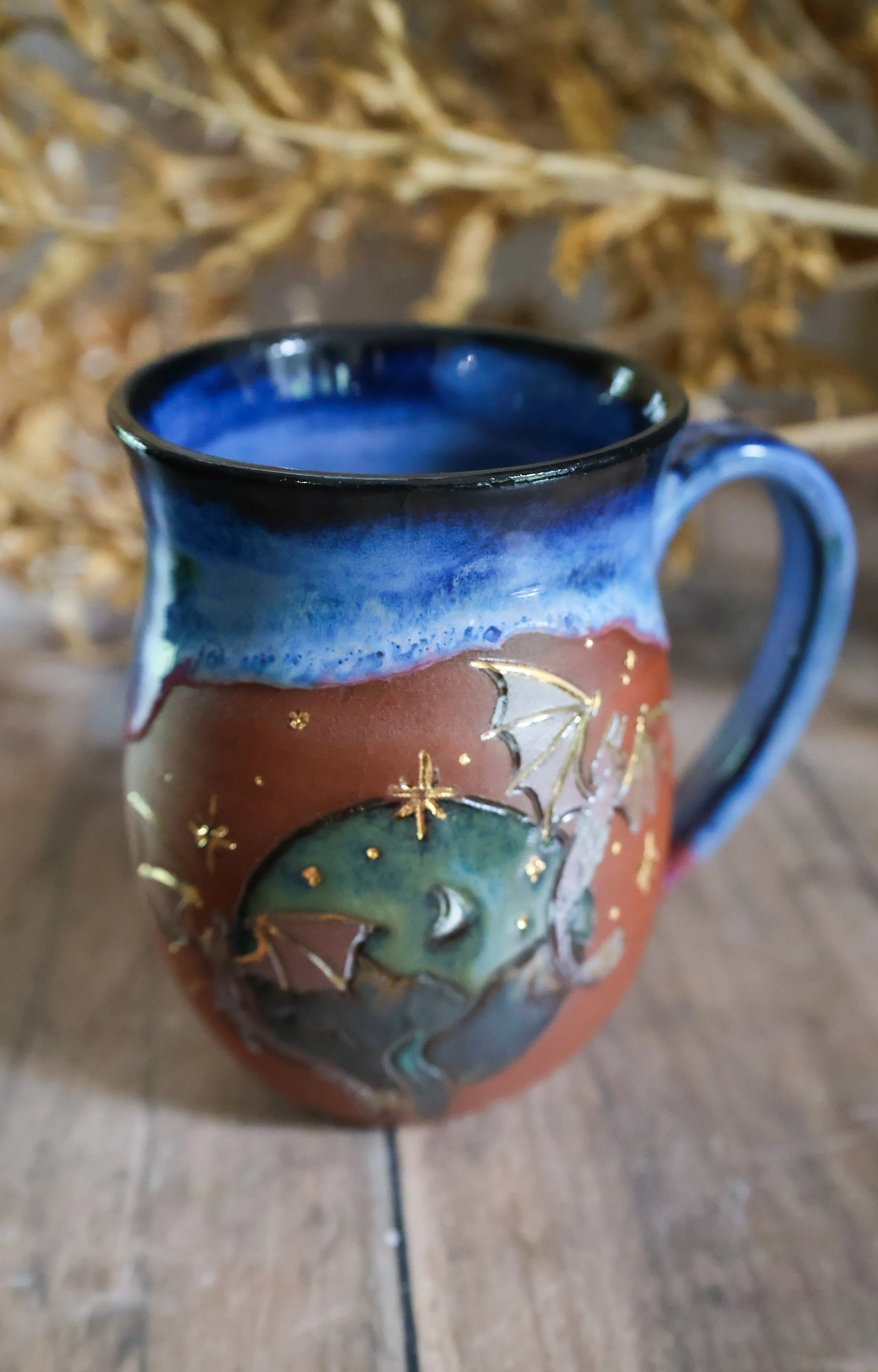 Hand Painted Ceramic Dragon Night Mug