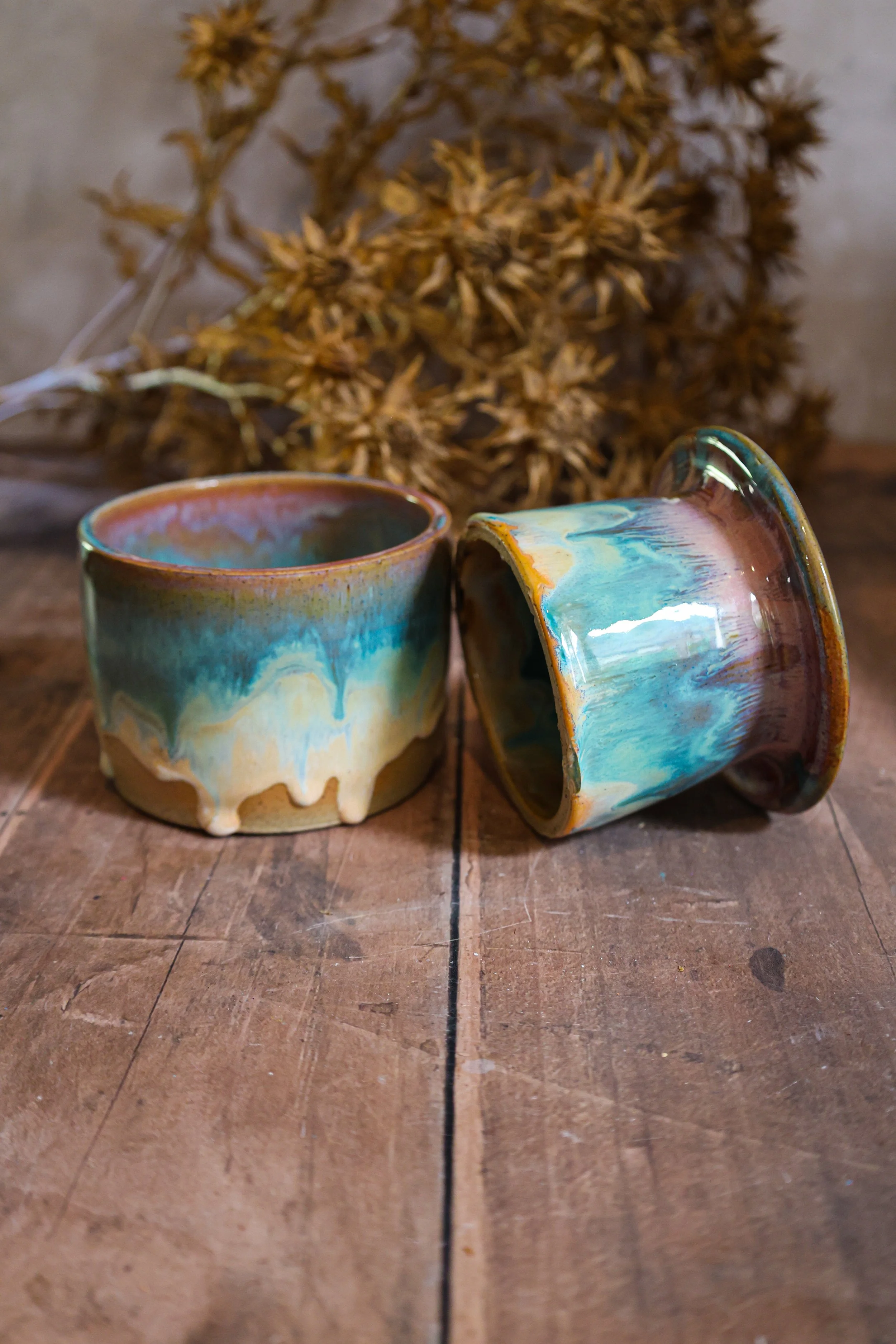 Each piece is handmade, so slight variations in size, glaze, and shape are normal. Photos are close representations, but some items may have minor marks, chips, or glaze drips, particularly at the base. Any major imperfections will be noted and reflected in the price.