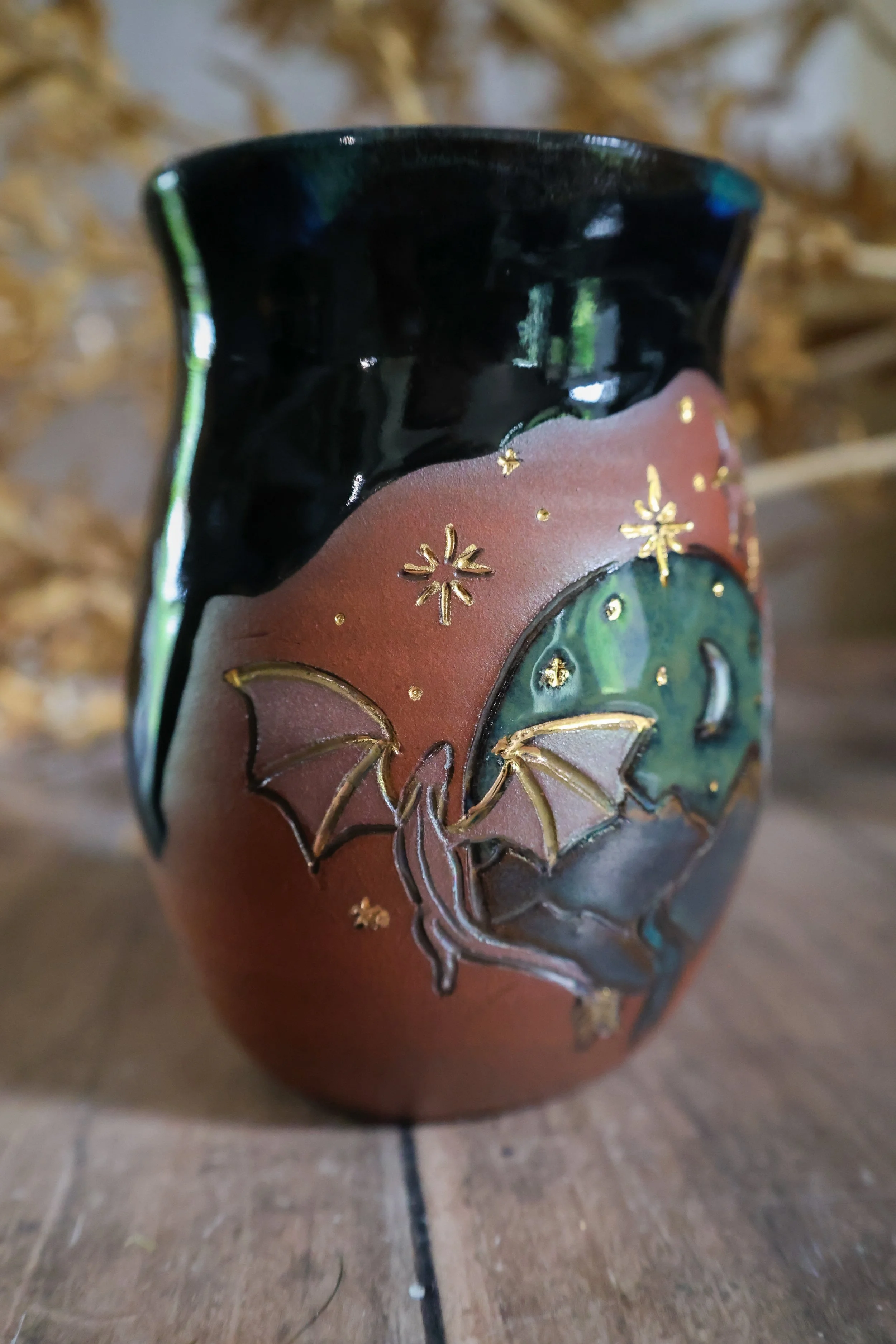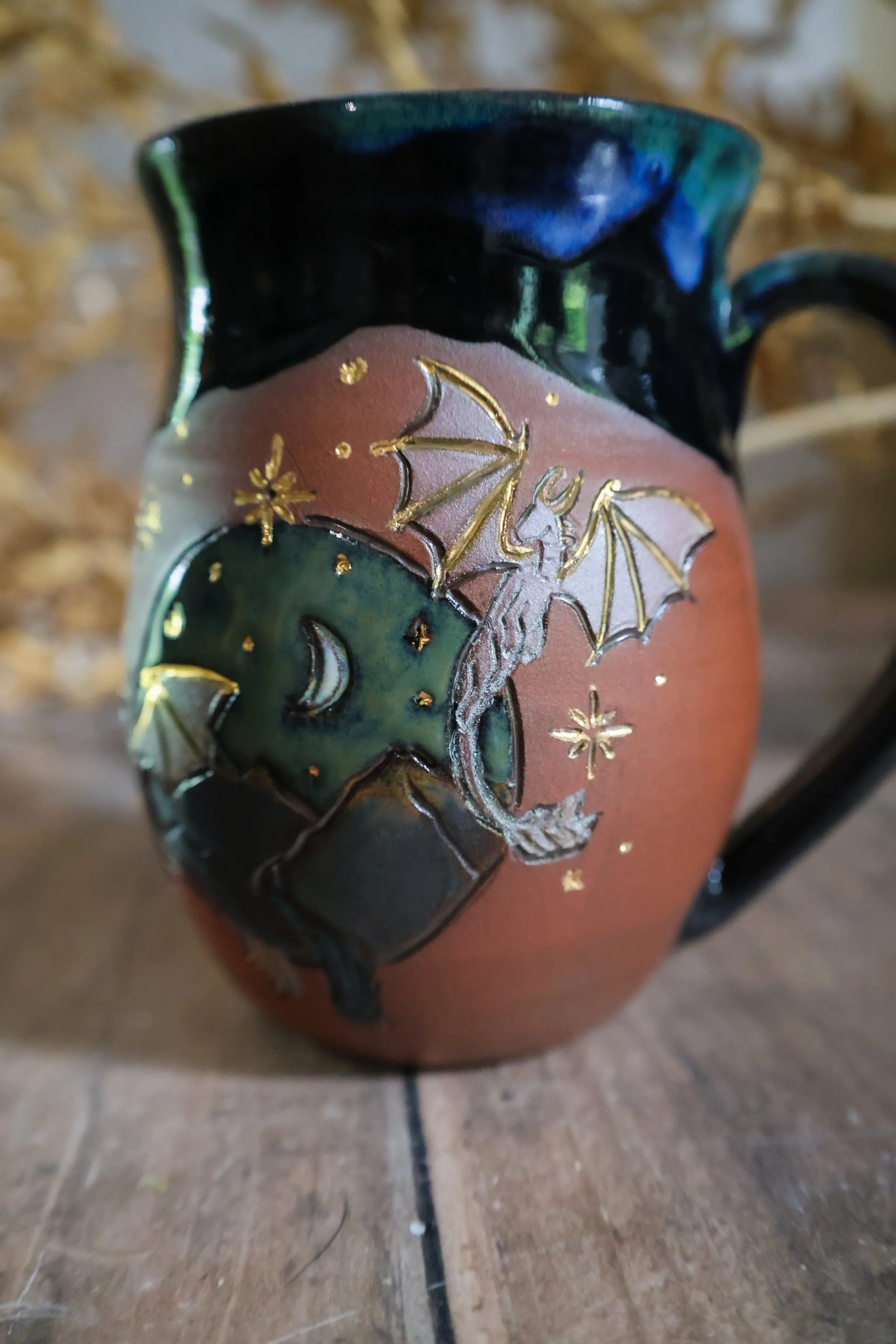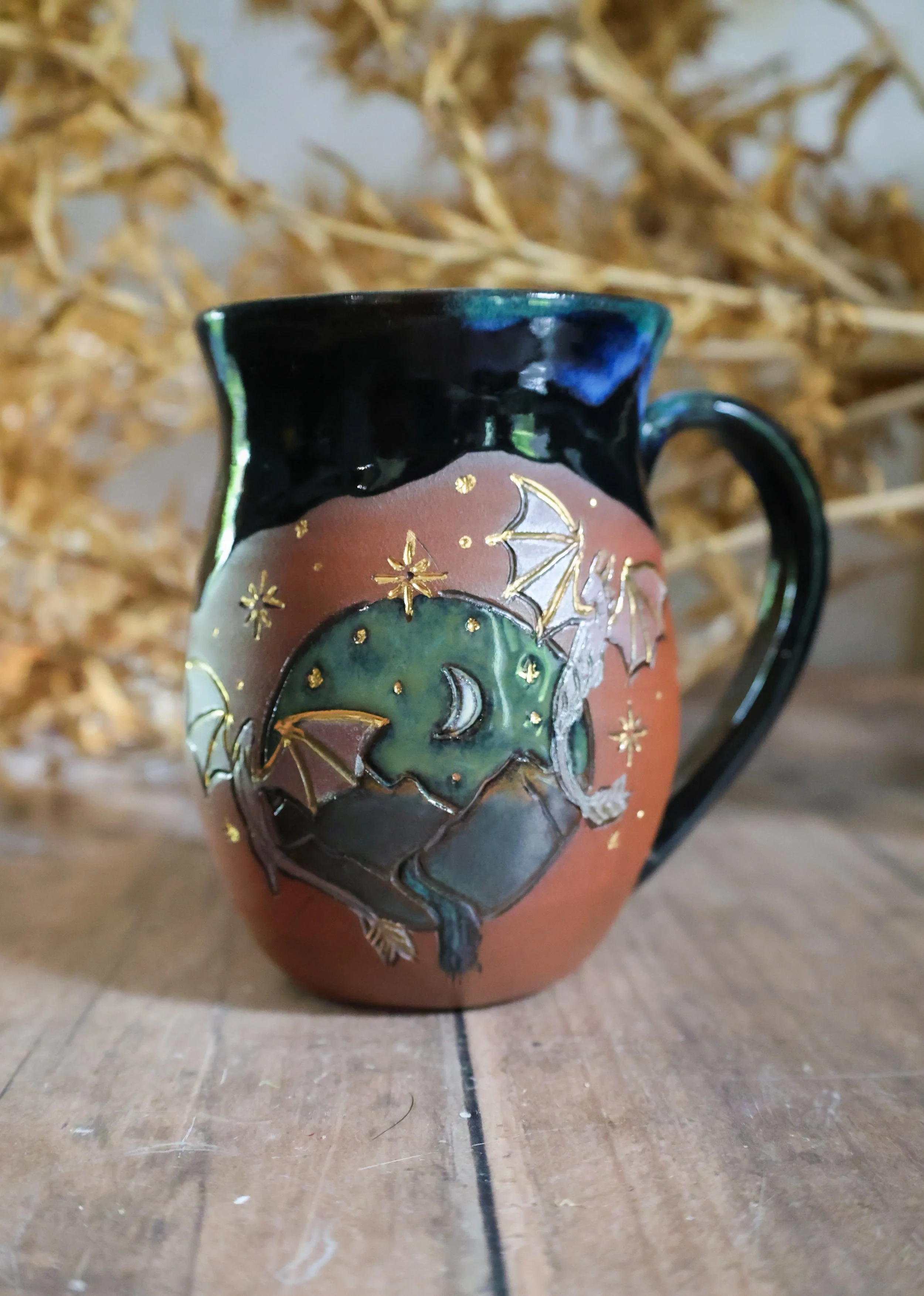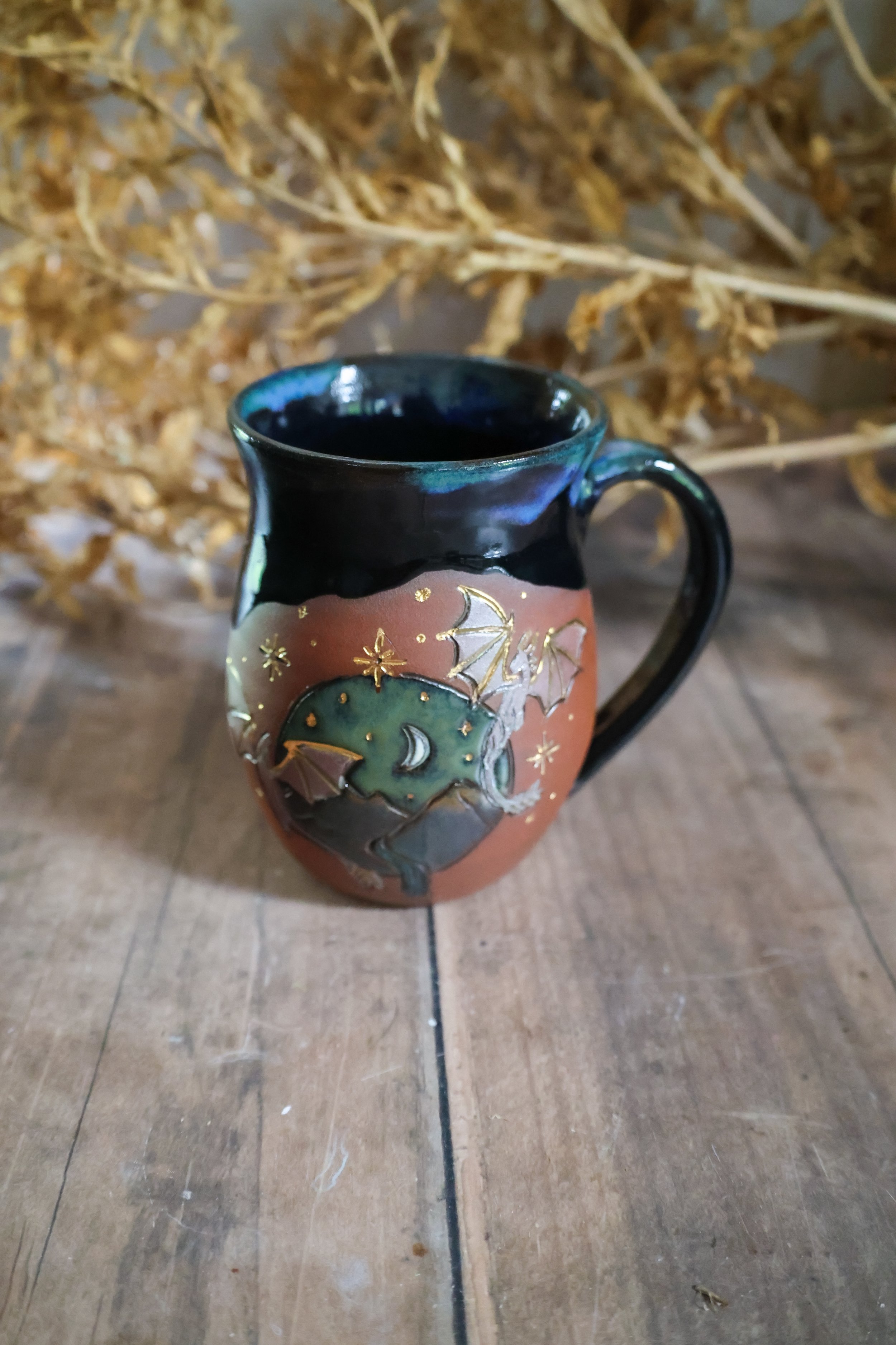 Hand Painted Ceramic Dragon Night Mug
