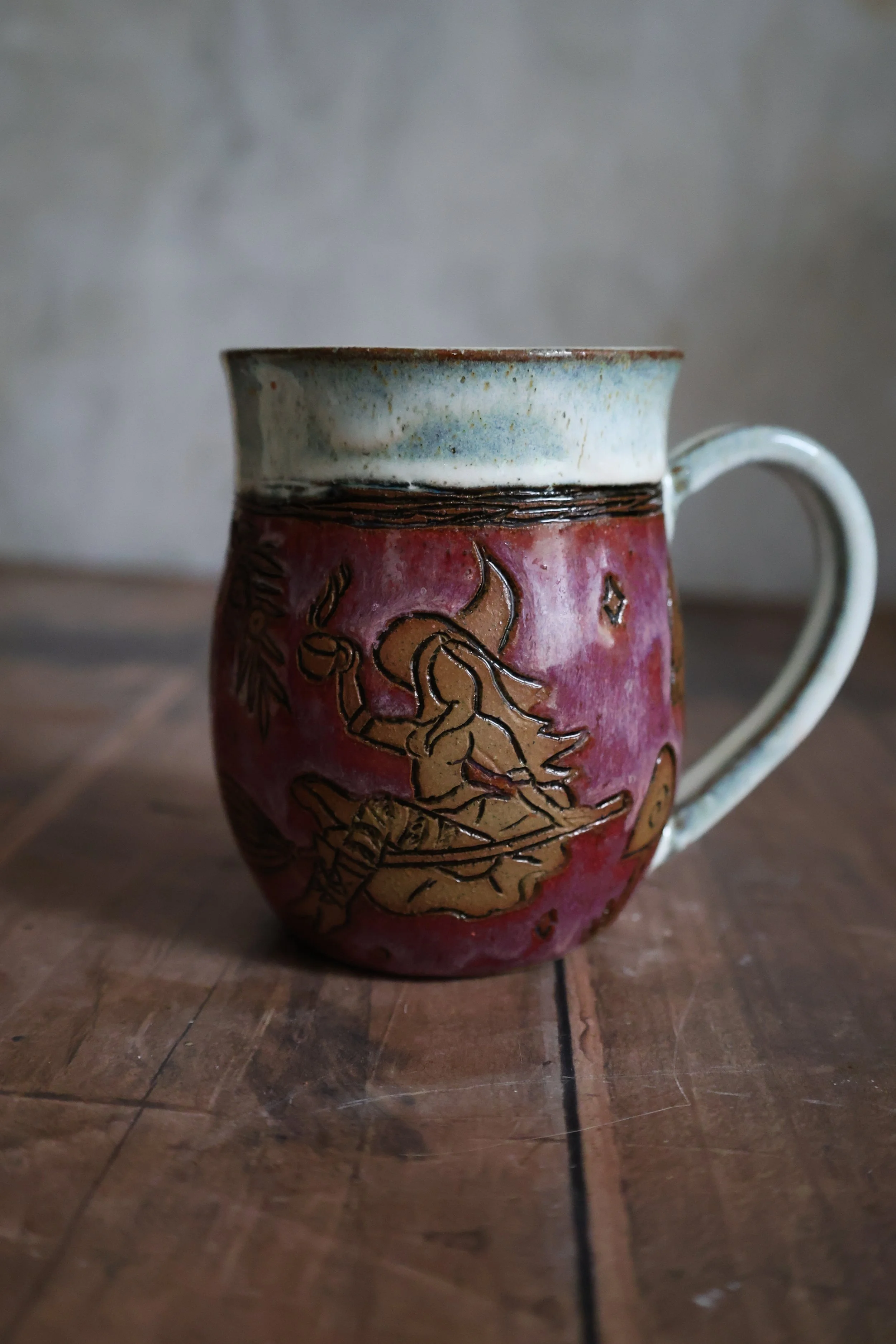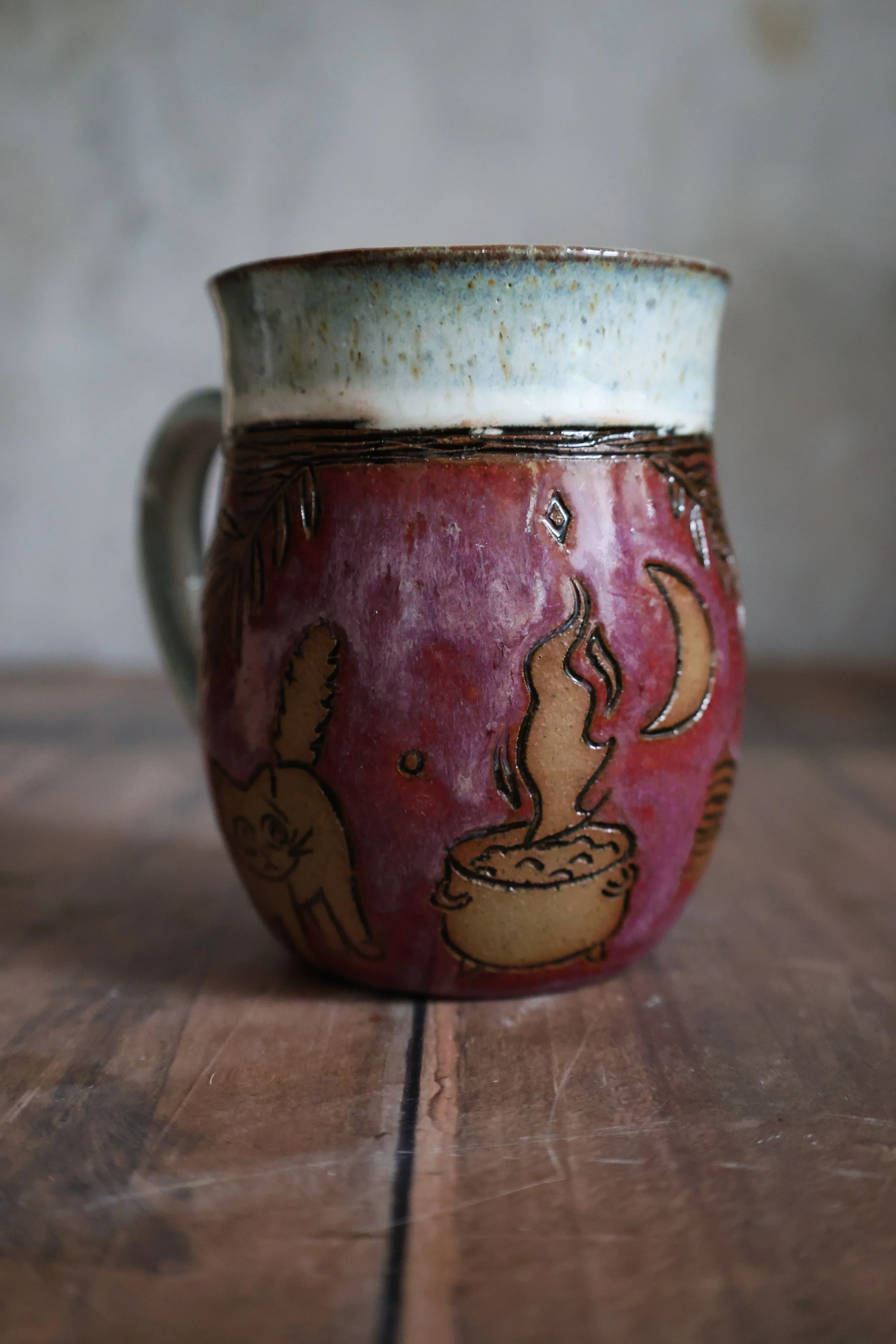 Hand Carved Ceramic Witchy Vibes Mug - Large
